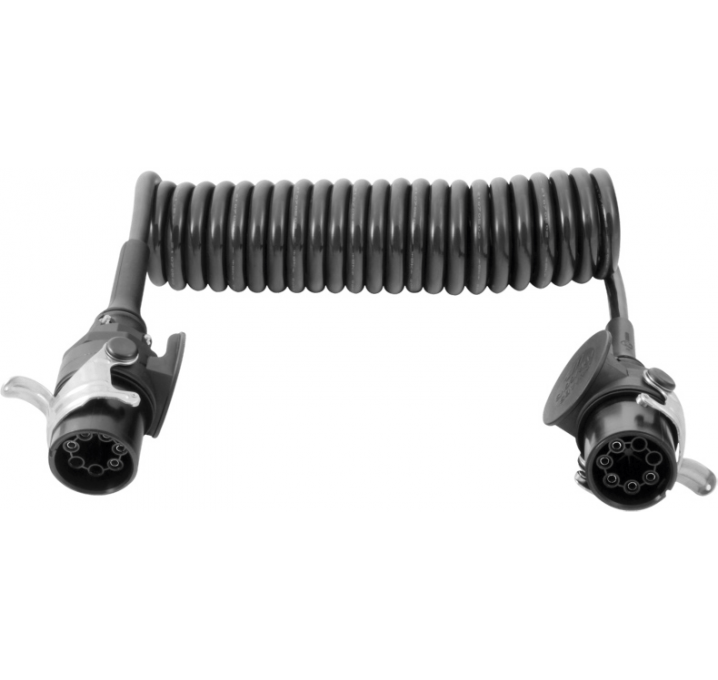 Kabel spiralny ø20/4m/ 2 wtyczki ALU 7 POL/24V/N