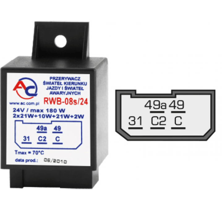 Przerywacz świateł kierunku jazdy i świateł awaryjnych RWB-08S/24