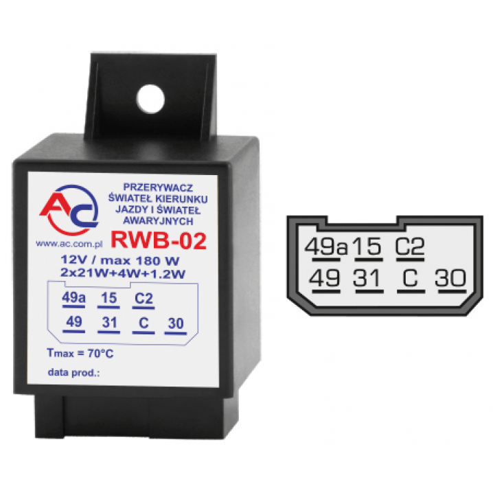 Przerywacz świateł kierunku jazdy i świateł awaryjnych RWB-02 POLONEZ, FIAT: 125p, 132, ŻUK, NYSA